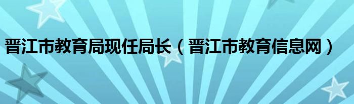 您好,今天柳柳来为大家解答以上的问题。晋江市教育局现任局长,晋江市教育信息网相信很多小伙伴还不知道,现在让我们一起来看看吧!
