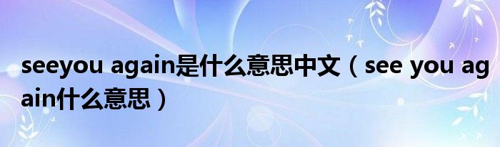 今天小编肥嘟来为大家解答以上的问题。seeyou again是什么意思中文,see you again什么意思相信很多小伙伴还不知道,现在让我们一起来看看吧!