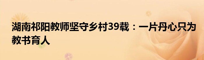 湖南祁阳教师坚守乡村39载:一片丹心只为教书育人