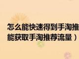 大家好,小品为大家解答以上问题。怎么能快速得到手淘推荐流量,资深运营告诉你怎么操作才能获取手淘推荐流量这个很多人还不知道,现在让我 浏览全文>>